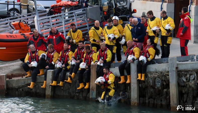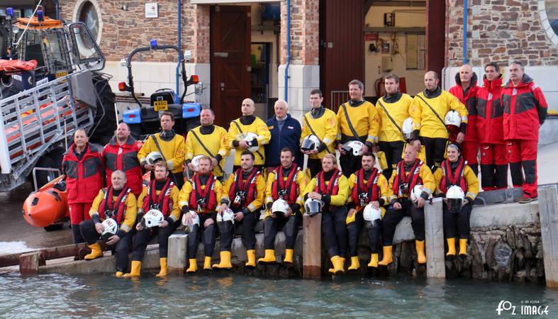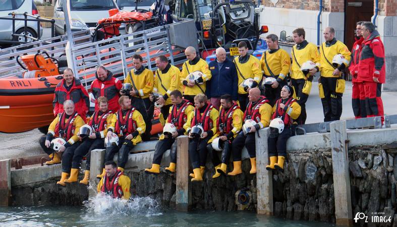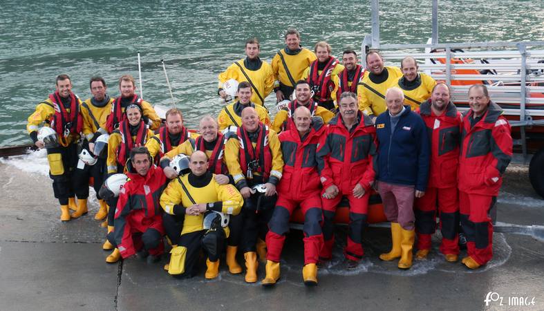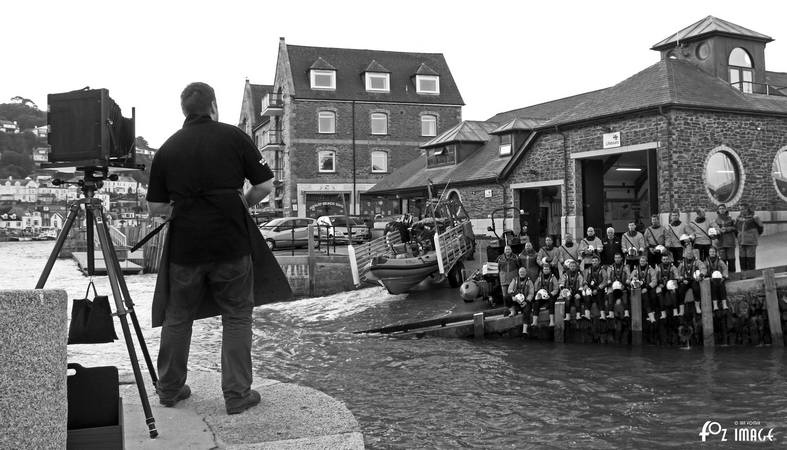 The crew waits on the slipway as Jack Lowe prepares his galss plates for the photograph.