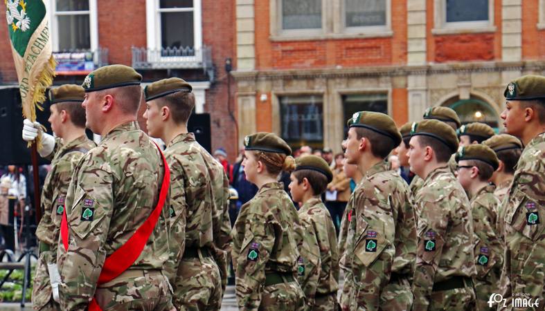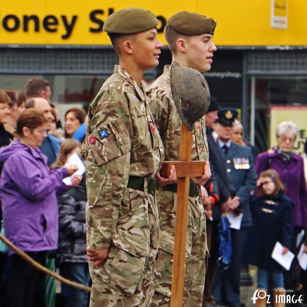 The first wreath is laid by the oldest veteran and youngest on parade.
