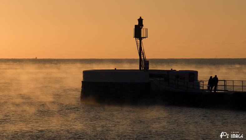 As the air heats up with the first of the sun rays, sea smoke forms.