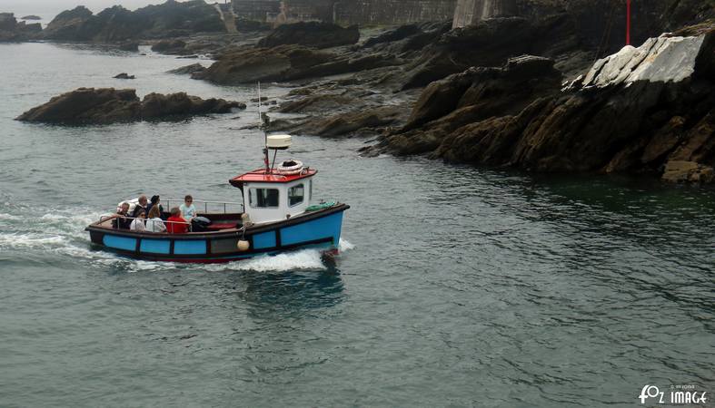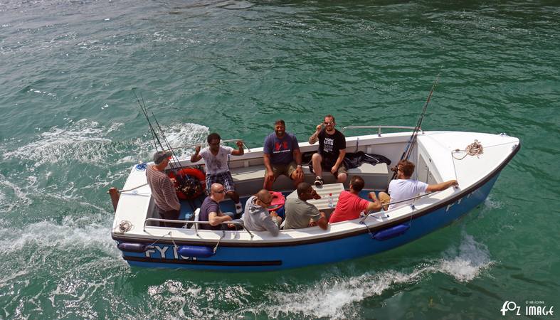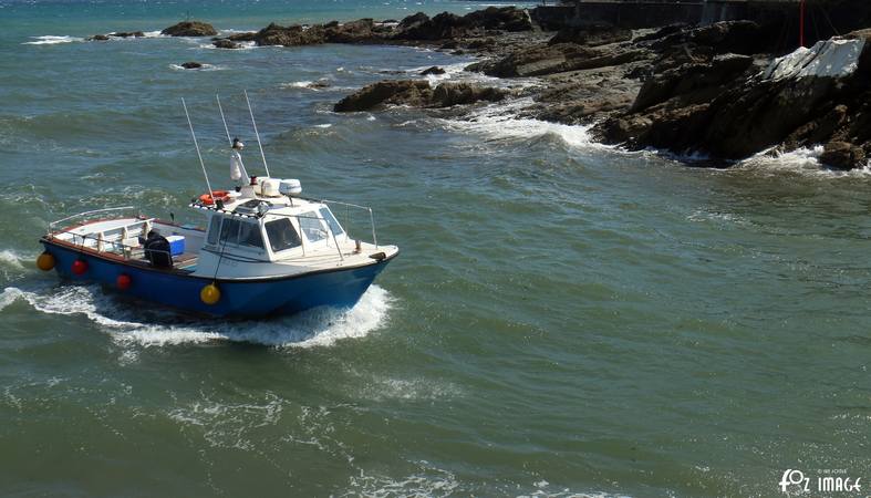 FY24 Ella passing Tectona moored in Looe Bay.