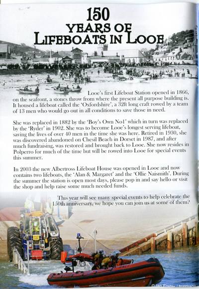 The 2016 Looe Guide published by Looe Town Council features an article celebrating 150 years of lifeboats in Looe.