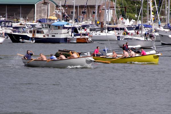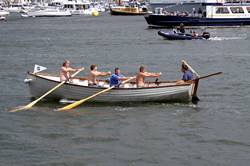 28th August 2009 - Dartmouth Royal RegattaThe Port of Dartmouth Royal Regatta is held over three days at the end of August.With the close links of Britania Navel College in the town, A Royal Navy vessel acts as guard ship for the regatta. The colours of the hulls reflect in the sunshine. Several small steam ships are moored in the port. On of the favourite events of the regatta is Friday's rowing. Whalers and "Blue" boats are used by eights, fours and twos. A whaler from a different centuary. |